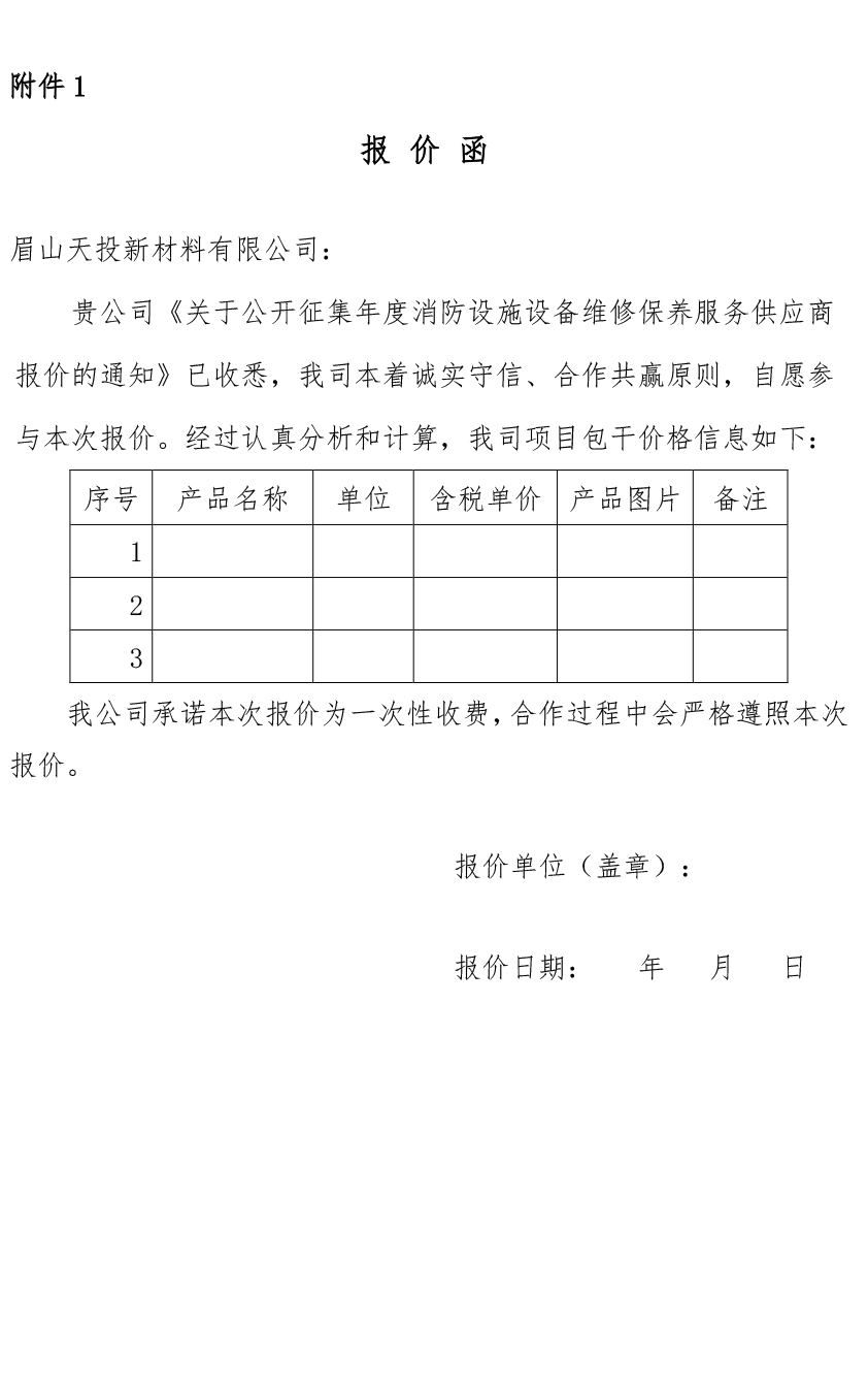 眉山天投新材料有限公司關(guān)于公開征集年度消防設(shè)施設(shè)備維修保養(yǎng)服務(wù)供應(yīng)商報價的通知